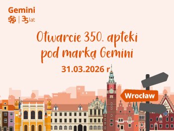 W roku, w którym firma świętuje 35-lecie działalności, powstaje 350. apteka pod marką Gemini. Nowa placówka, działająca w modelu franczyzowym, zostanie uruchomiona we Wrocławiu przy ul. Druk